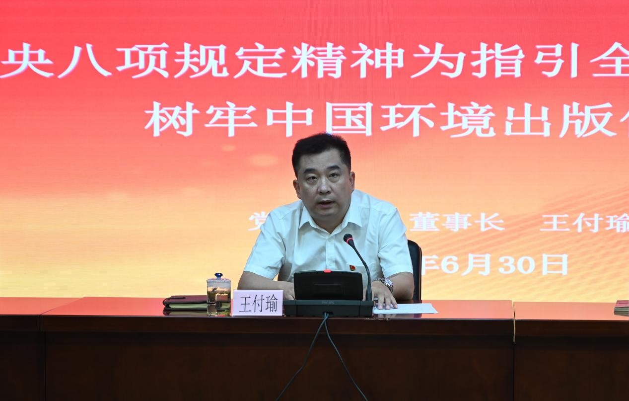 王付瑜同志結合深入貫徹中央八項規定精神學習教育要求,以《以中央八項規定精神為指引全面加強作風建設  樹牢中國環境出版價值觀》為題為全體黨員、干部講黨課。